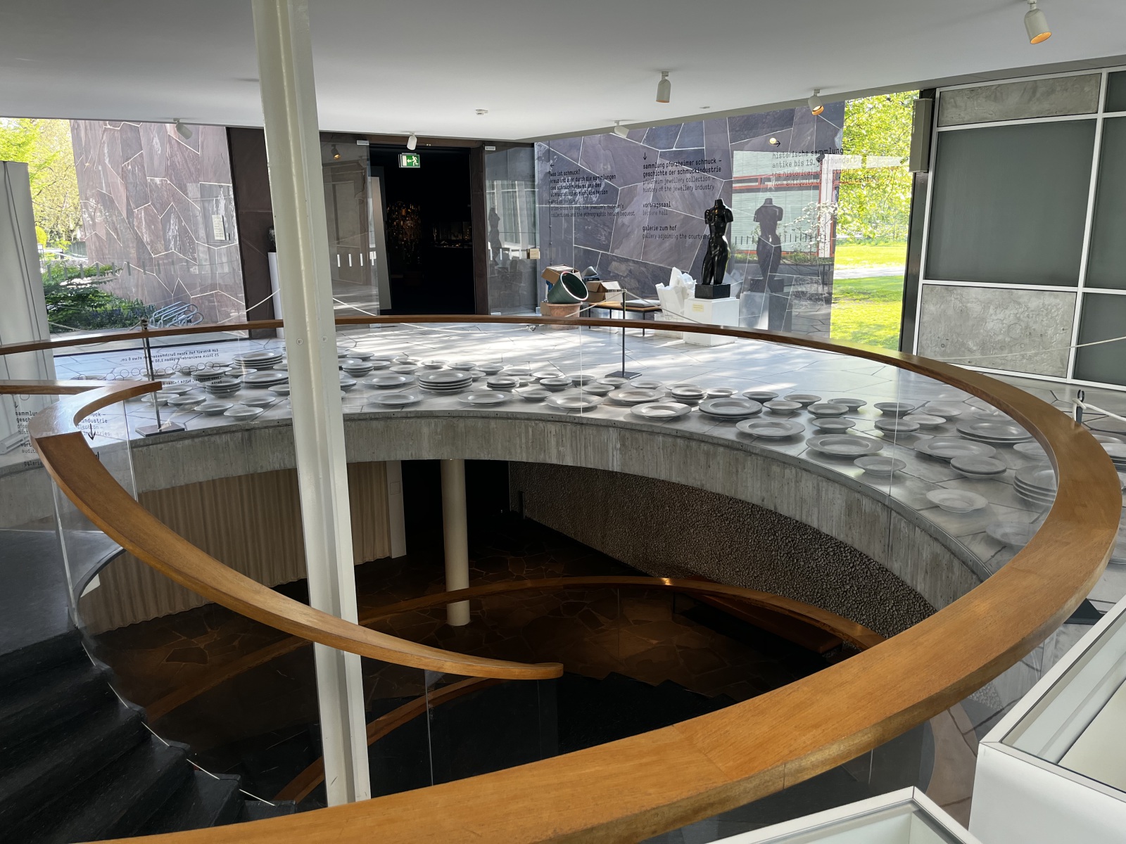 Volker Staab setzte mit dem Ensemble einen starken städtebaulichen Akzent. Die Treppenhalle, nach dem Vorbild der Alten Pinakothek in München gestaltet, schließt zwei Loggien am Nord- und Südeingang zu einer öffentlich begehbaren Achse zusammen und ist Teil einer Platz-, Freitreppen- und Hofabfolge, welche die Altstadt mit der Mainbrücke verbindet. Dem Architekten ist es hier gelungen, „Tradition und Moderne auf das Vortrefflichste zu vereinen“, wie es in der Begründung des Deutschen Architekturmuseums heißt.
